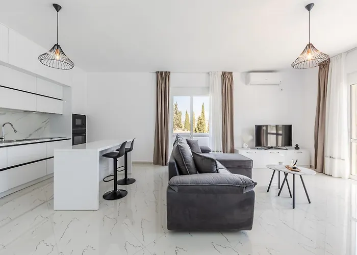 Das 50 m² große Bright Modern Apartment With Balcony Views Golem By Pikhost verfügt über eine Terrasse und liegt 4 km weit weg vom Durrës-See.